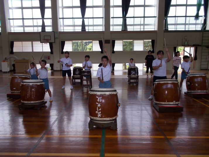 いちき串木野市内在住の馬場先生指導のもと,「よせばやし」「清流」「三宅」の3曲の練習をしています。子どもたちは,みんな太鼓が大好き!今では,いろいろな行事にも声をかけていただけるようになりました。もっと練習して上達するぞ!子どもたちの頑張りに触発されて,保護者の方も太鼓の練習を頑張っています。