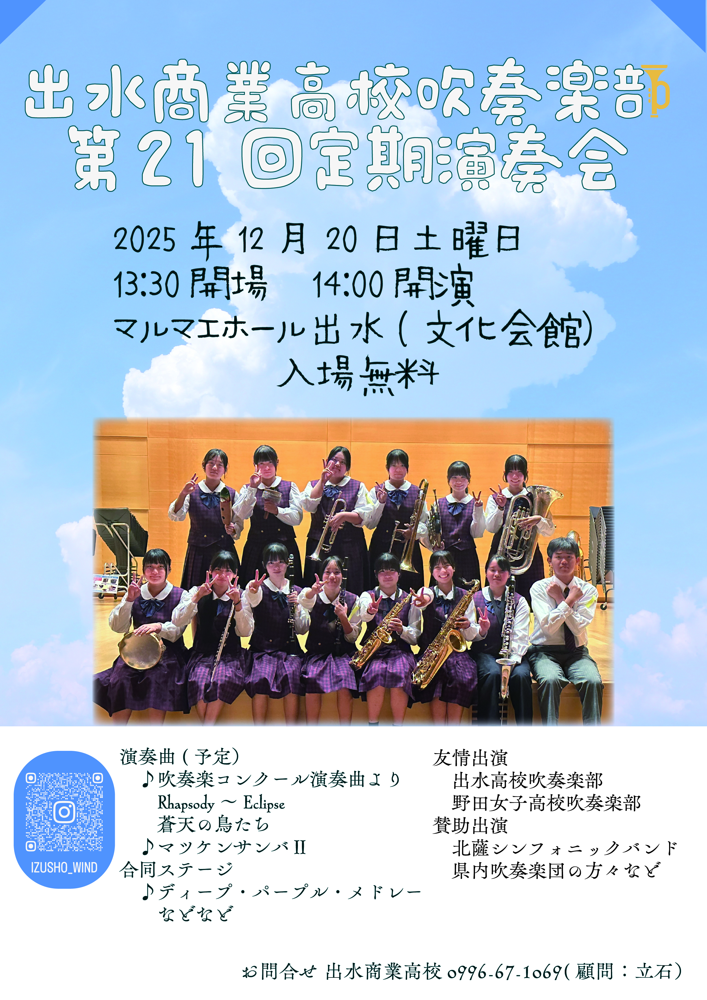 ※ 入場無料 学校(電話0996-67-1069 顧問:立石)へお問い合わせください。