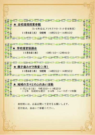 を掲載しました。※ 配布済みの学校だより裏面の「SOSの受け止め方教室」の日付に誤りがありました。正しくは10月31日(金)です。お詫びして訂正いたします。
