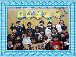 | 4年生 半成人式A 10歳の半成人式の記念にみんなで写真を撮りました。あと10年経ったらいよいよ成人式! 10年後の成人式もみんなで集まっていろんなことを話したり楽しんだりしてほしいです。 みんな,10年後はどんな大人になっているのかな。 |