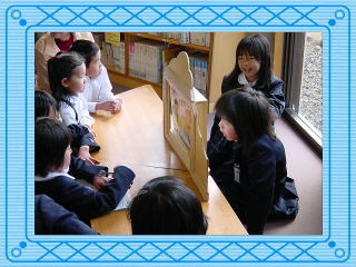 図書委員会の紙芝居 3学期の活動計画で紙芝居をすることを決めた図書委員会。月野小のみんなに楽しいお話を紹介するため,昼休みに実施しました。聞きにきているお友達のために読む練習もしました。聞きにきてくれたお友達も最後までお話に夢中でした。 |