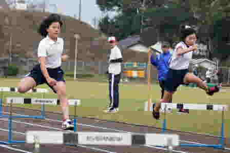 月野小学校の5年生・6年生の代表が力の限り走ったり跳んだり投げたりしてがんばりました。