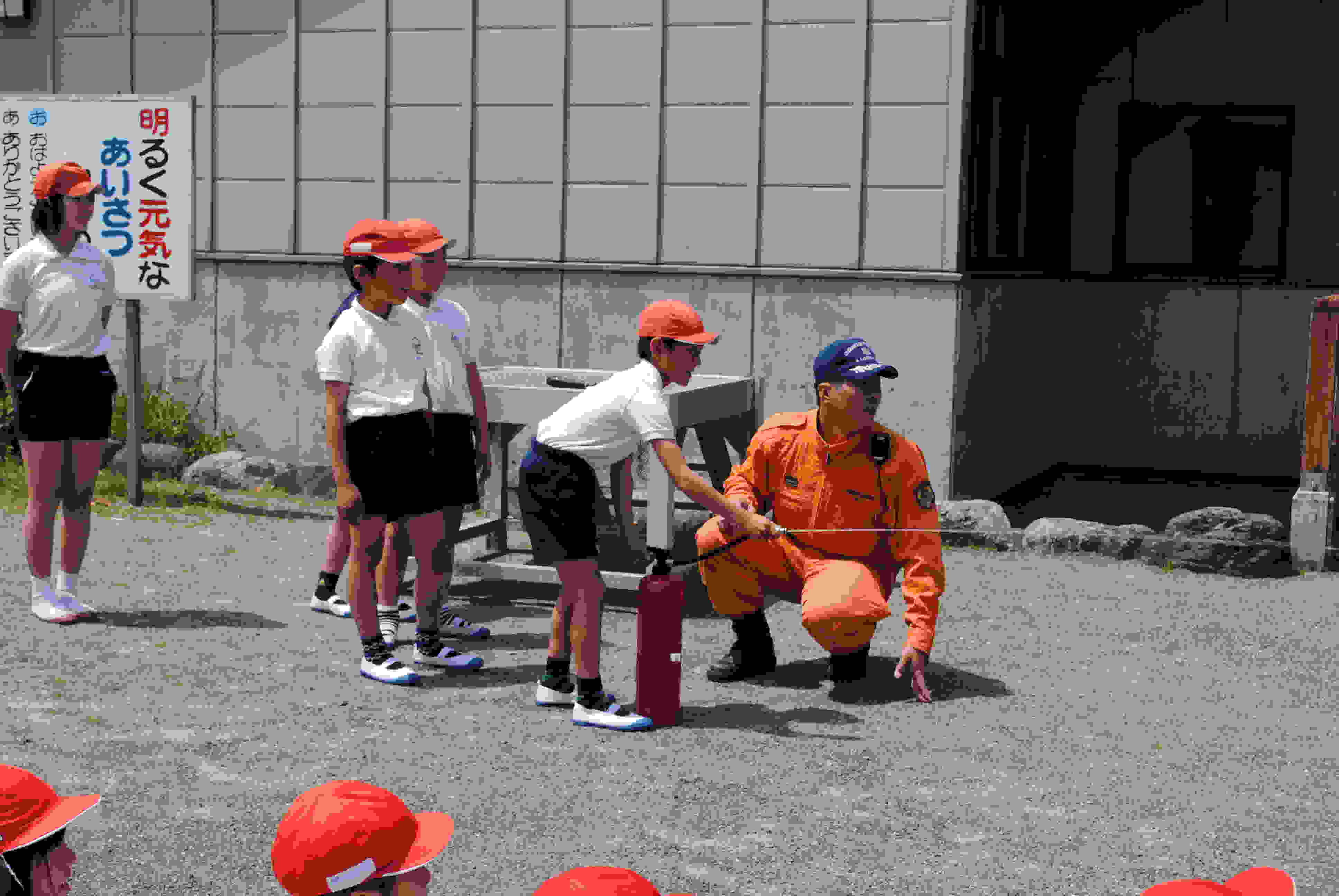 避難訓練がありました。「地震発生後,印刷室より出火」という設定で行われました。机の下に隠れた後,「おさない,かけない,しゃべらない,もどらない」「おかしも」を守って避難できました。避難した後は消防署の方から初期消火の方法を教えて頂きました。まずは「大声で助けを呼び119番する」「火の手が小さい場合は消火器を持って消火する」ことを学びました。5年生が代表で炎を消火してくれました。消火器を使うことが無いのが一番ですが,いざという時に対応できるためにも今後も防災意識の向上が必要ですね。