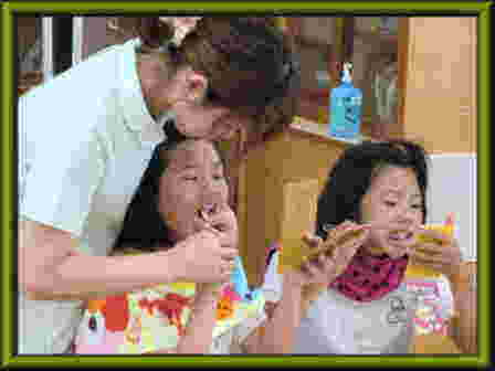 め出し液を使って,磨き残しのチェックもしました。赤く残った部分を重点的に