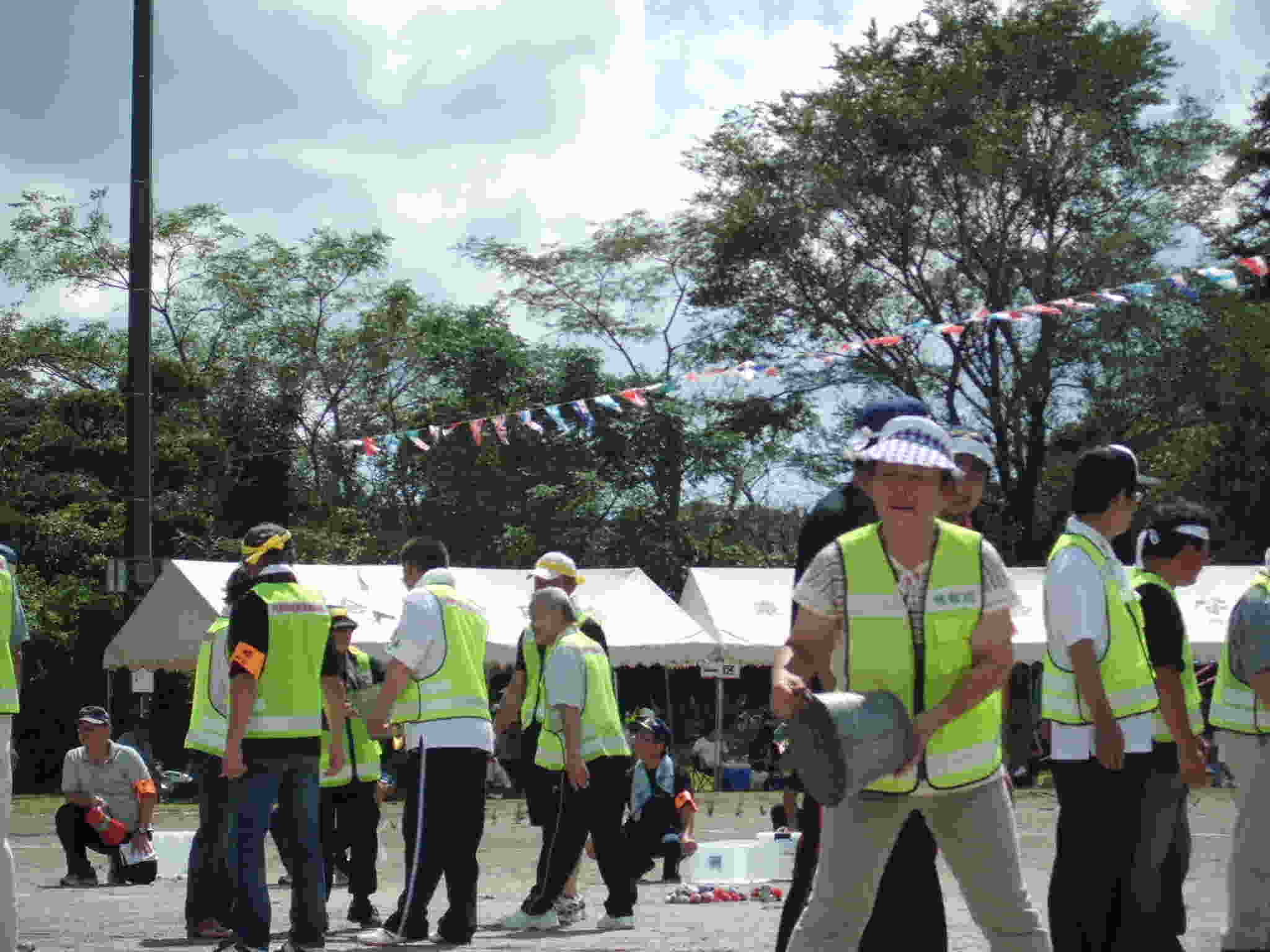 校区種目でも140周年種目としてお手玉140個を使ってバケツリレーを行いました。