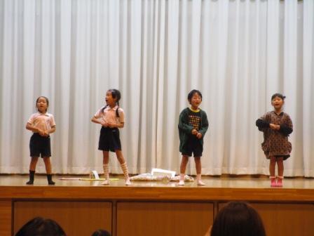 2年生は、国語で学習した「お手紙」の劇をしました。長いセリフもしっかりと覚えて,上手に表現してくれました。