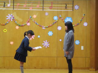 一人一人が親への感謝の手紙を読み上げ, 自分の未来予想図と成長してきた過程を宝の地図にして保護者に渡しました。保護者の方も今までの想いをこめた色紙を渡してくれました。 今年も心温まる会となりました。